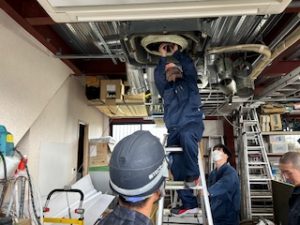 令和7年入社に加え、2年目3年目の若手もあえて教える側にまわる研修会を開催しました。もちろん総監督は水野部長。業務用メインの会社あるあるですが、意外に苦手な壁掛け、、、量販出身の僕はへちゃらなんですが、、、